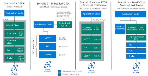 Azure además ofrece SDK para otros escenarios como dispositivos basados en Linux, Windows, FreeRTOS y hasta para equipos sin sistema operativo mediante MQTT.