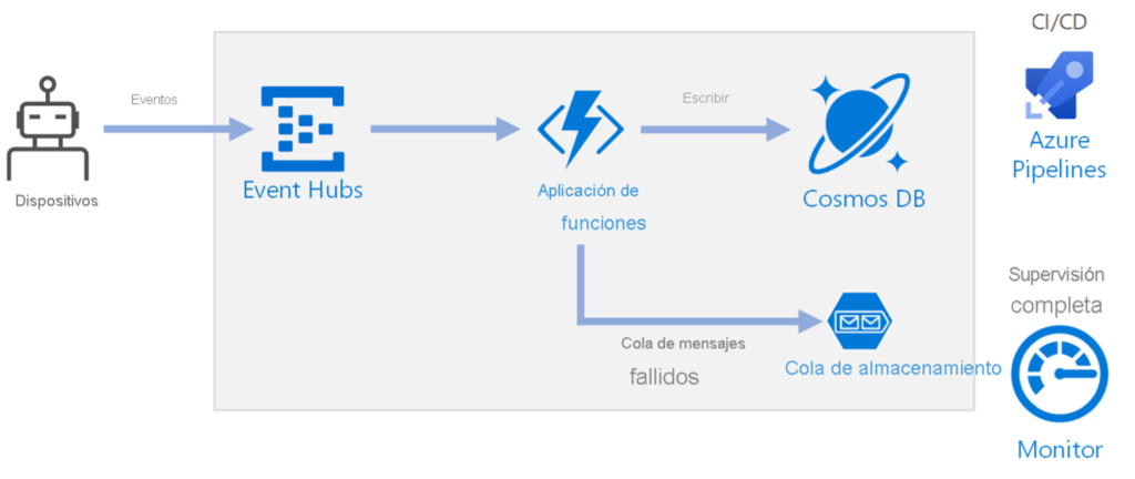 Azure Functions cuenta con diversas formas de conexión con servicios de Azure como Azure Cosmos DB, HTTP, Blob, etc. Además de poder conectarse con Azure IoT Hub mediante Azure Event Hubs